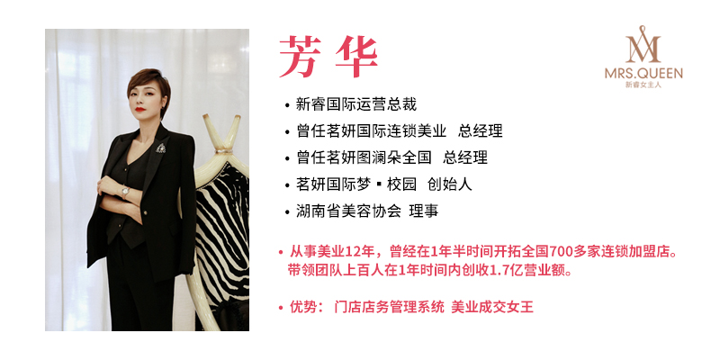 芳华的梦想很大,她想拥有一所属于自己的美丽大学,拥有自己的讲师团,做自己的课程,芳华的梦想也很小,至少对于当前来说,路定了,她想要做的就是服务好每一位走进新睿女主人的客户,让他们真正地发现更好的自己。
