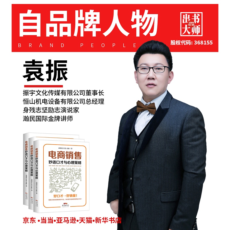 就在此时,他认识了孔斌国际的吴艳老师。在孔斌国际的全力帮助和策划下他的第一本书《电商销售妙语口才与心理策划》,很快在2017年2月底在全国各大书店面世发行。孔斌国际还为袁老师量身定制了个人品牌全网宣传方案,帮他做到了未战先胜!