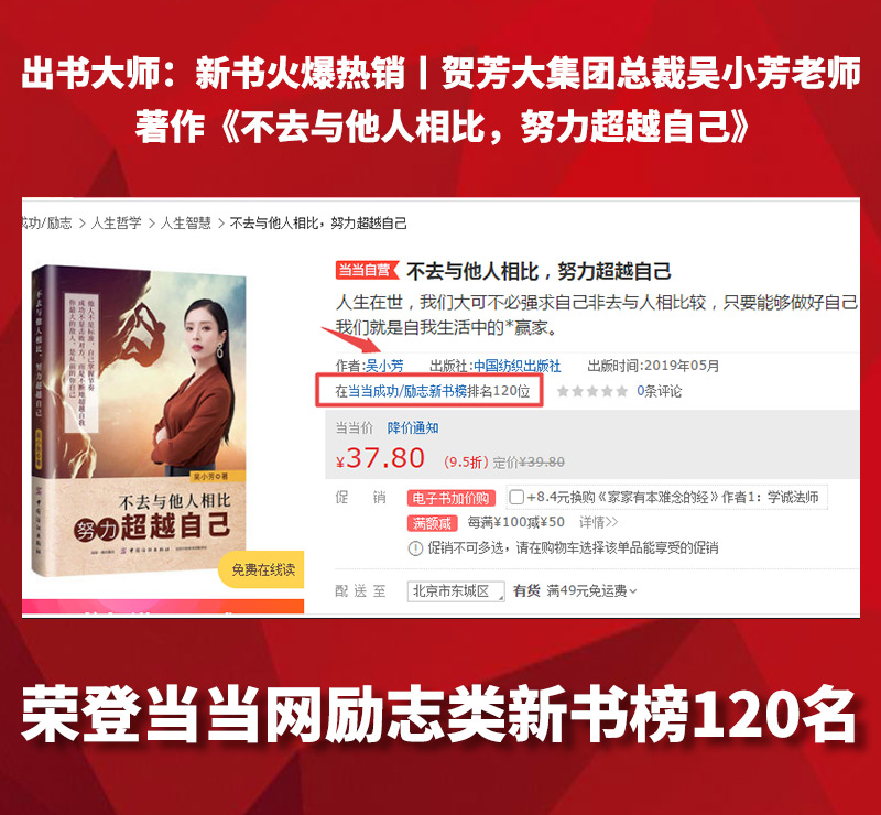 吴小芳:吴小芳|贺芳大总裁吴小芳老师第二本著作《不去与他人相比,努力超越自己》荣登当当励志类新书榜120名,火爆热销