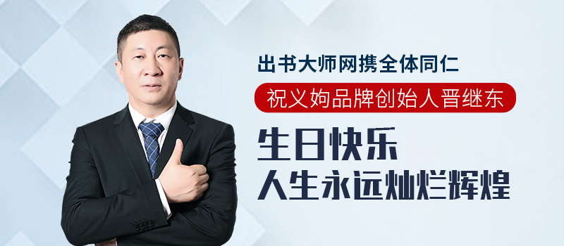 一生一世,时间和生命的精彩总会在轮回中相逢;一年一度,总会有些温馨的日子值得珍惜和铭记。在9月23日这个特殊的日子里,出书大师网全体同仁迎来了义姁品牌创始人晋继东老师的生日诞辰,并为其送上诚挚的生日祝愿:愿晋继东老师的人生永远灿烂辉煌,愿他耳边永远充满甜蜜的喝彩,心里流淌着幸福的旖旎,祝他生日快乐!