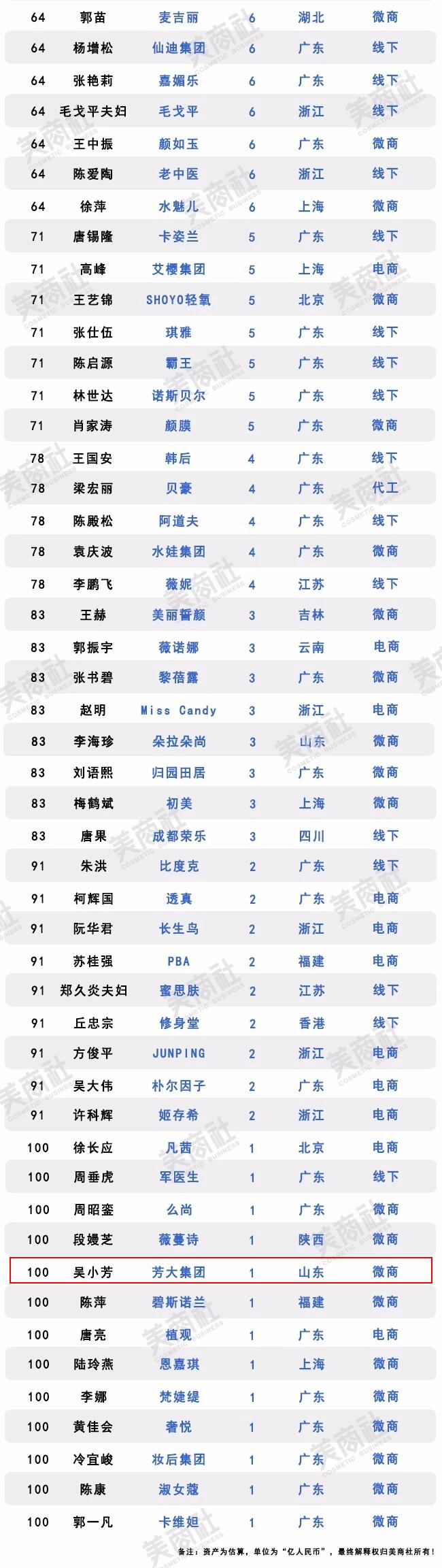 吴小芳:吴小芳 | 荣获美商社 2018化妆品富豪榜第100名