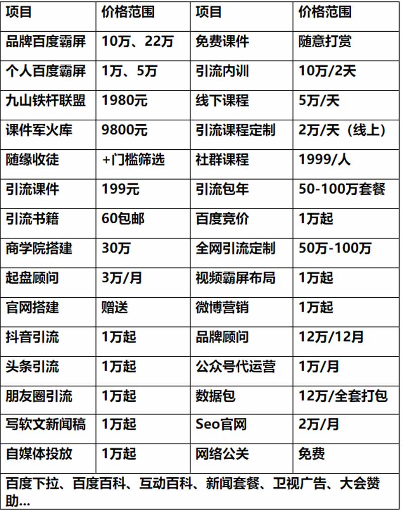 【擅长】全网引流与粉丝裂变、帮品牌做百度霸屏推广、引流策划、互联网ip打造、网络负面公关、微商起盘咨询、社群营销、seo、百度发布、引流课程等