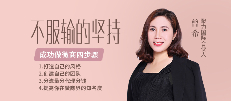 曾希认为授人以鱼不如授人以渔。此后四年,她用自己丰富的微商经验对属下进行一对一辅导,继续帮助合作伙伴扩充战队,增大团队的经济创造能力。她的策略是设置团队培训系统,每周定期培训。曾希将自己多年的营销知识以及实战经验倾囊相授,面向全国开启公开招商课,尽自己最大的努力帮团队伙伴裂变团队。