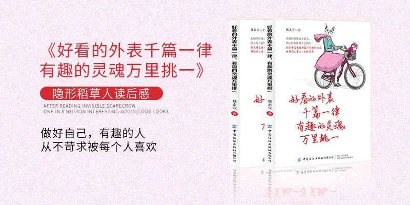 《好看的外表千篇一律,有趣的灵魂万里挑一》这本书中写了很多励志的小故事,在你不定别人肯定的时候或不自信的时候,读读这本书,也许会有帮助,帮忙到一丢丢也是作者出这本书意义了;这本书的字体也很大,看起来不会眼睛累。这本书给我的收益是,不要太在意外表,内心才是一个人更应该修炼的;做好自己,我不是人民币,做不到人人都喜欢。培养一些兴趣爱好,让生活更美好。希望读到这本书的小伙伴,也有或多或少收益。