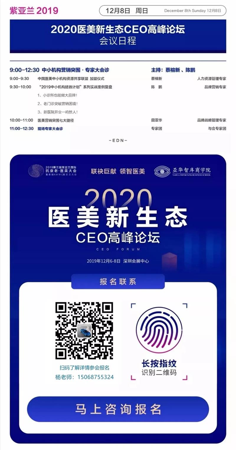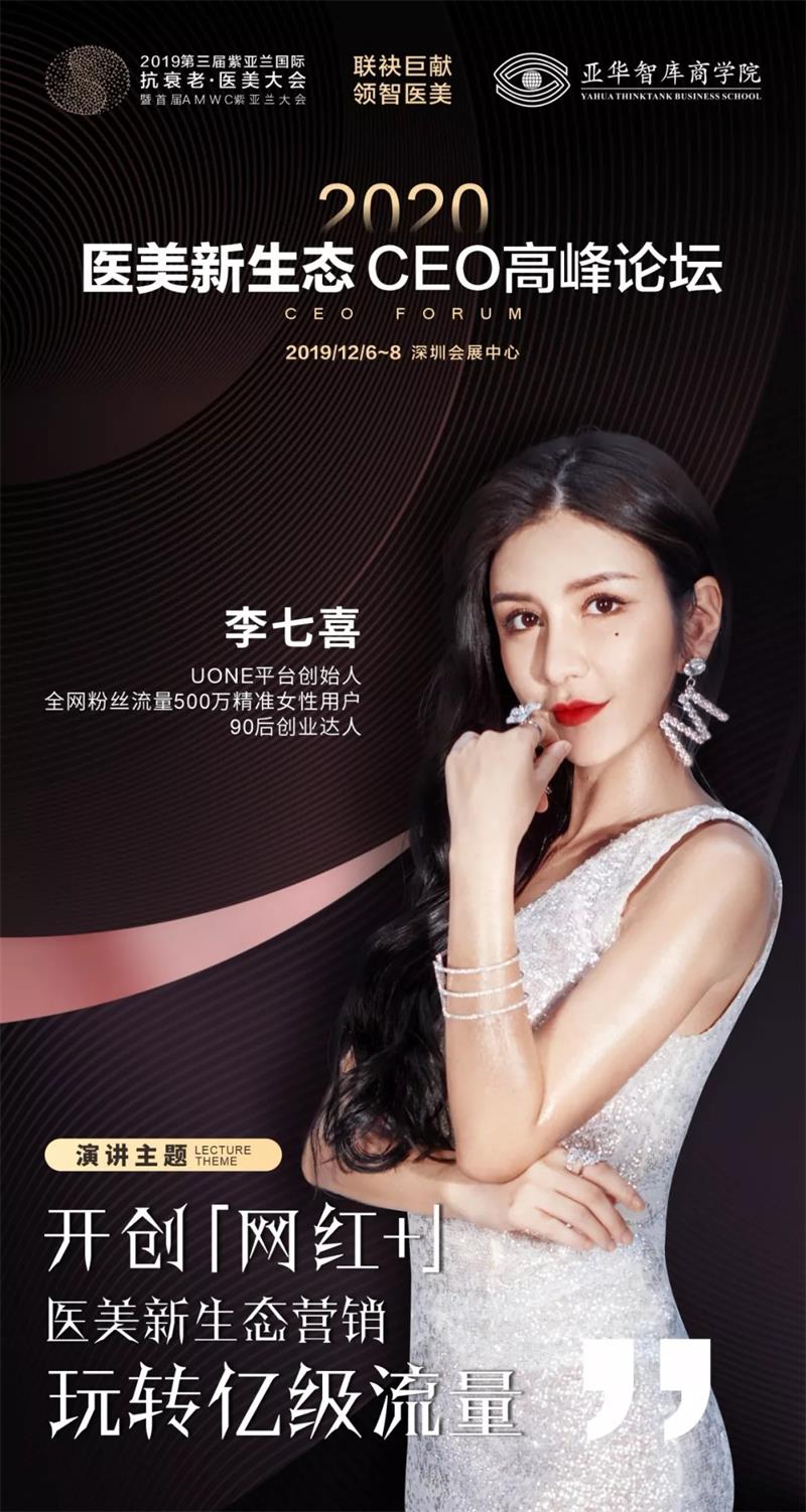 2019年12月6-8日,第三届紫亚兰国际抗衰老医美大会即将在深圳会展中心隆重举行!在本次大会上,紫亚兰大会组委会携手亚华智库重磅推出“2020医美新生态CEO高峰论坛”,届时,超级网红李七喜将分享自主创立的“网红+”医美新生态营销模式,教你玩转亿级流量,通过网红与粉丝的互动,为机构源源不断“带货”!