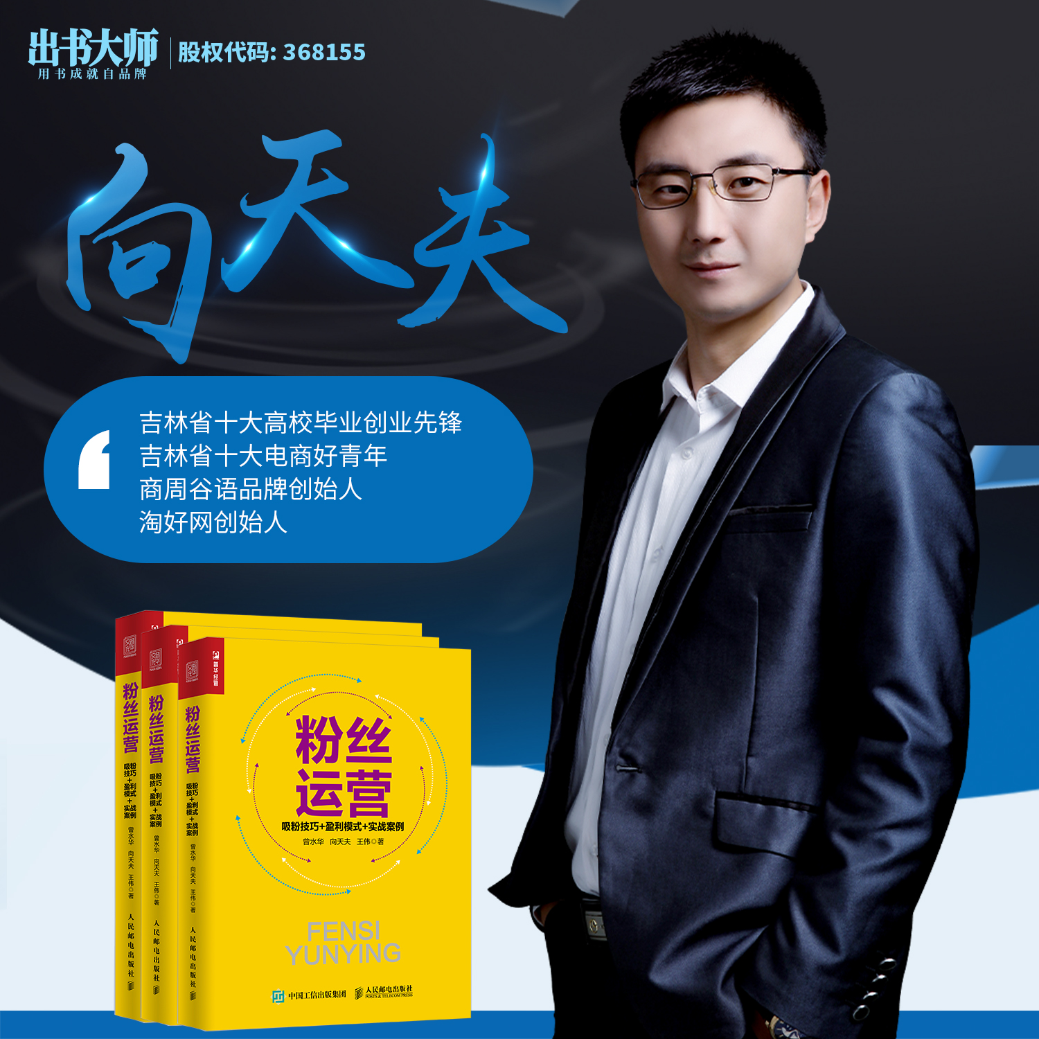 向天夫商周谷语的创始人,吉林市商贸代表团、名特优企业代表,吉林省十大高校毕业创业先锋吉林省十大电商好青年。2008年向天夫大学毕业后依靠自己的能力,创立了“永吉go”与“商周谷语”。并且凭着对粉丝运营长期的试验以及独到的见解。成就了《粉丝运营》一书的诞生。《粉丝运营》立足当前经济领域中的粉丝热点现象,结合案例深入分析了如何吸引、管理、引导和维护粉丝,为读者提供了使用、全面的粉丝运营经验和技巧。