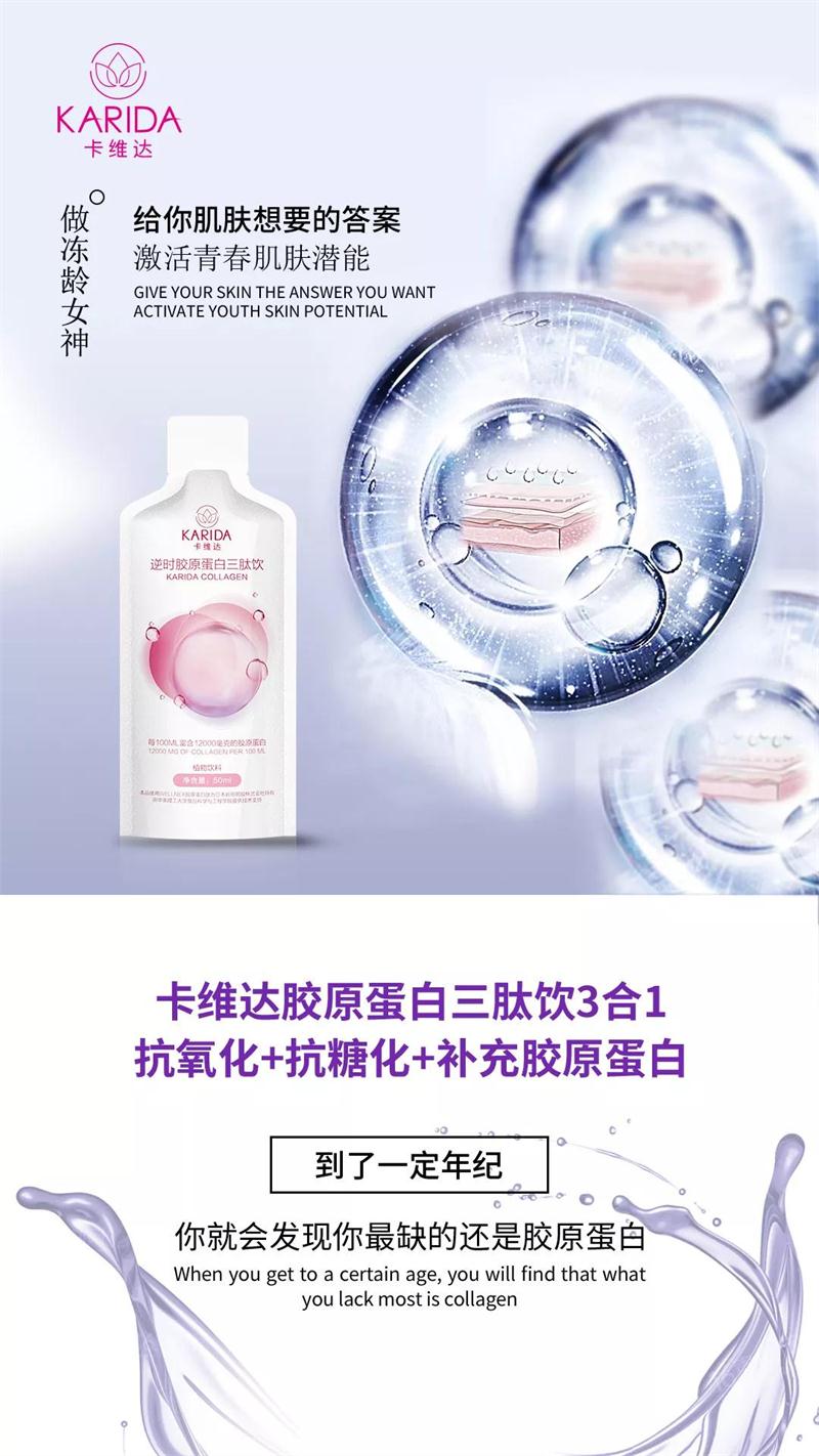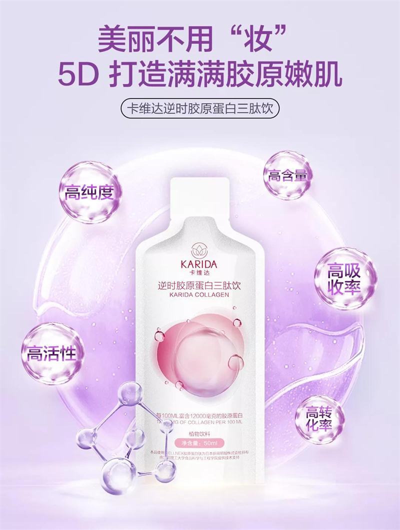 卡维达胶原蛋白三肽饮含有3种蛋白肽,分别是弹性蛋白肽、胶原蛋白三肽、鱼胶原蛋白,其中的弹性蛋白来自日本深海鲣鱼心脏动脉球组织,无污染,适合人体肌肤吸收,最具有生物活性。