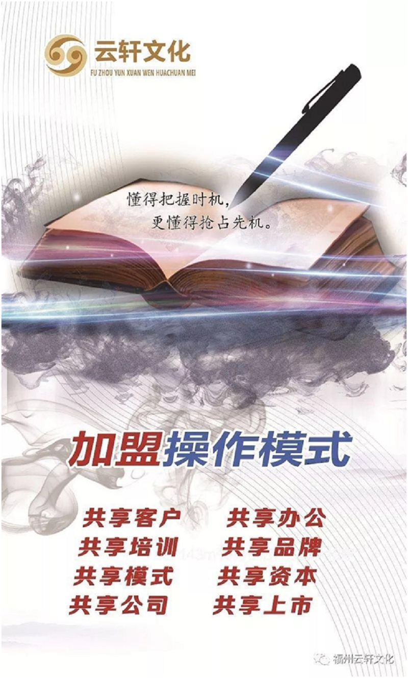 福州云轩文化传媒有限公司隶属香港轻莹控股旗下福州分公司,总部位于福建福清,是一家具有前瞻性部署、专业化运营和规模化经营的新兴文化创意企业。公司依托强大的资源优势,专业的业务水准,精心的策划设计,一丝不苟的职业精神,赢得了广大客户的一致好评。其团队更是在云轩文化创始人—余建的带领下,以具有独特创意的文字、整合各类资源的营销方案、完善的售后服务,创造了傲人的业绩。公司自成立之初,以“文化传承历史,信心构建未来”作为企业使命,帮助企业快速建立自己的品牌和影响力。以高度的使命感,专注行业发展,与时俱进,竭诚面对中国的企业和客户,以更科学、更专业、更贴近客户需求的方式为商家企业提供最优质的服务。