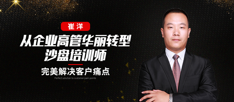 在市场经济的浪潮下,拥有丰富实战经验的崔洋老师雄心勃勃,为打造自己的超强个人品牌,从企业高管华丽转身,成功转型培训师。凭借十年的培训经验,不断形成自己的品牌课程,内容丰富,硕果累累,涵盖经营管理类、团队管理类、沟通技巧类、心态激励类众多种类,包括:不忘初心牢记使命沙盘《重走长征》、金融资本运作沙盘《商战博弈》、国家电网沙盘《电力时代》、革命史诗巨作沙盘《新中国从这里走来》、人力资源管理沙盘《巅峰》、能源环保沙盘《能源时代》、企业管理沙盘《我是王者》、跨部门沟通沙盘《关键对话》等,许多口碑课程为企业量体裁衣,适用于企业各个阶段、各个层面的不同问题解决,课程精益求精,是铸造品质培训的典范。