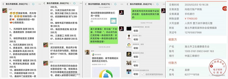 作为一个有着10年光辉历程、获得过民政部社会组织评价“5A”等级及安徽省“四好”商会的社会组织,淮北市建筑装饰协会怀揣着强烈的社会责任感,广大会员单位在会长赵辉先生的号召引领下,积极响应,充分发挥和利用自身优势,群策群力、使物尽其用,全面持续推动;使资源聚集,共同支持疫情防控工作。