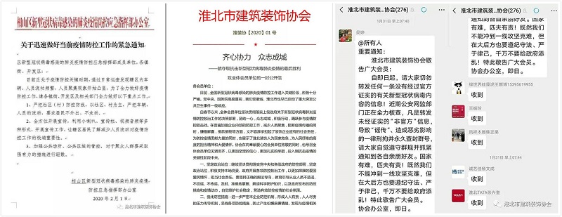 这是一场没有硝烟的战争,这也是一场责无旁贷的使命,在未来的日子里,赵辉先生将带领淮北市建筑装饰协会上下一心,同舟共济,形成一种攻艰克难的强大力量,为协同全国人民坚决打赢这场疫情防控阻击战,贡献淮北装饰行业应尽的一份力量!