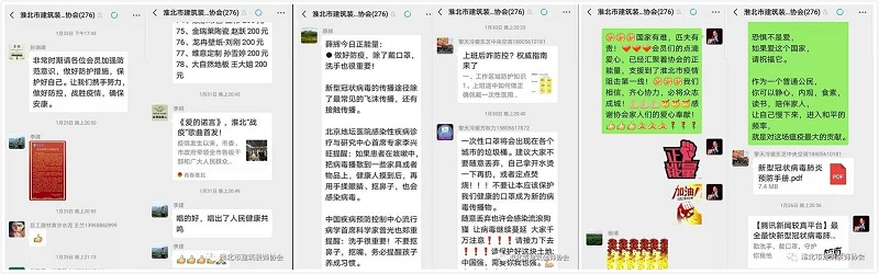 在此期间,赵辉先生持续关注全国疫情形势发展,及时在微信群发布一线防疫措施和抗疫讯息,号召全体会员响应。赵辉先生对淮北市的疫情防控工作更是颇为上心,他以身作则,率先捐款,起到了很好的示范作用,除此之外,他还积极倡导会员加入,同时发起募捐援助倡议,用爱心凝聚人心,传播社会公益正能量,为淮北市的疫情防控工作提供强有力的支撑。