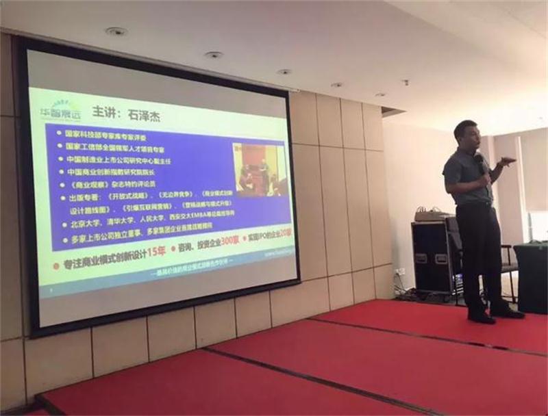2019年9月21日-22日,国家科技部专家库专家评委,工信部全国领军人才项目授课专家,华智晟远(北京)管理咨询有限公司董事长石泽杰老师受邀为清华大学EMBA湖北总裁班的企业家学员讲授《互联网+商业模式创新》课程。