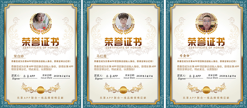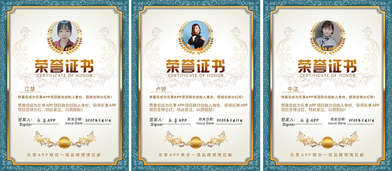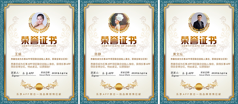 作为乐盟刷脸支付创始人暨乐享APP项目联合创始人,婷婷老师匠心独具,带领技术团队研究客户喜好,以大数据为依托,调整业务权限,能够满足广大代理商的使用需求。同时,其也正式获得乐享APP项目的全球分红,并获得了专业的荣誉证书认证。除此之外,婷婷老师还是是多家微商品牌内训讲师,曾服务过多家微商品牌并成功打造万人团队,近年正带领团队创业者深耕刷脸支付领域,并取得了显著的成就。