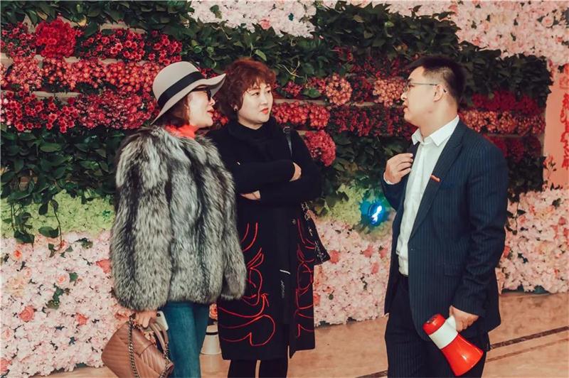记忆空间工作人员,在为客户讲解鲜花廊的设计理念。