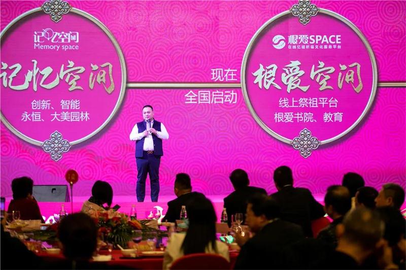记忆空间《根爱华夏启动中国》根爱space线上产品发布会上记忆空间集团董事长刘鑫讲解根爱space产品内涵和整个五年的战略布局,无疑,记忆空间线下创新型智能公墓和线上根爱space的产品组合将为中国百姓提供行孝祭祖、国学文化学习、家族精神传承、幸福生活记忆、建立家族祠堂文化、人生传记撰写的文化传承综合平台。