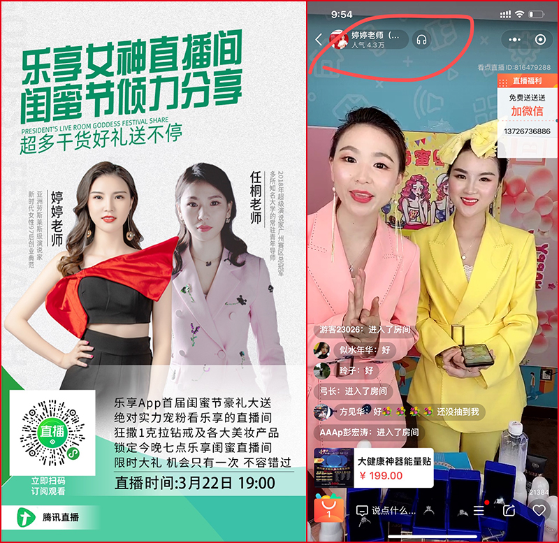 直播刚开始10分钟,直播间人数就已经达到16800人,20分钟后人数攀升至21300人,临近尾声,婷婷老师的超高人气再次得到印证,43000人同时在线,欢聚一堂,气氛非常热烈。在短短的2个小时内,几万人的眼球关注乐享直播间,乐享APP瞬间刷爆万人朋友圈,让人惊叹不已!