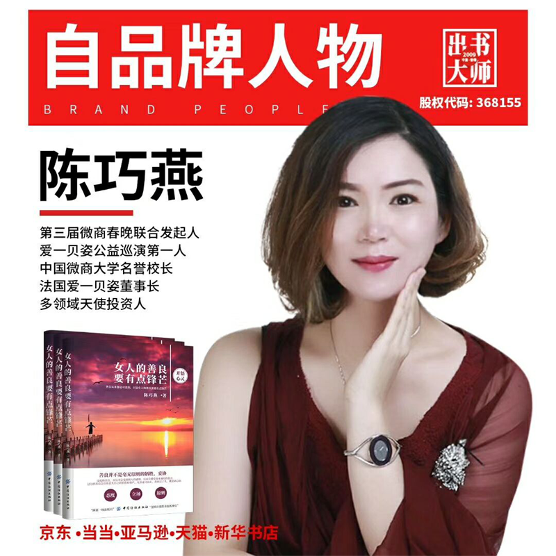 出书大师网是真自品牌管理(上海)有限公司旗下品牌,是由董事长阿里巴巴金牌讲师、孔子第74代孙孔斌先生创立,公司十数年如一日,致力于推动个人品牌的营销策划,多年来始终秉承着一个使命——用书成就自品牌。多年来,这里走出一个又一个大师,他们之中有人是名满天下的微商女王,有人是享誉中国的经济大鳄,有人是不破不立的管理大师,有人是风流儒雅的学者,他们都用各自的行动影响和改变着这个时代,他们平凡而又不凡,渺小而又伟大,在出书大师网这个平台上,实现了当初的梦想,接下来,让我们走进他们中的佼佼者之一陈巧燕,感受属于她的别样传奇。