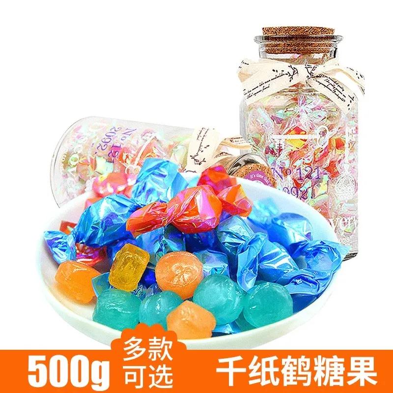 很多罐装千纸鹤糖都是在婚礼上比较多出现的种类,这种糖的颜色非常好看,包装的糖果纸就像会发光一样。