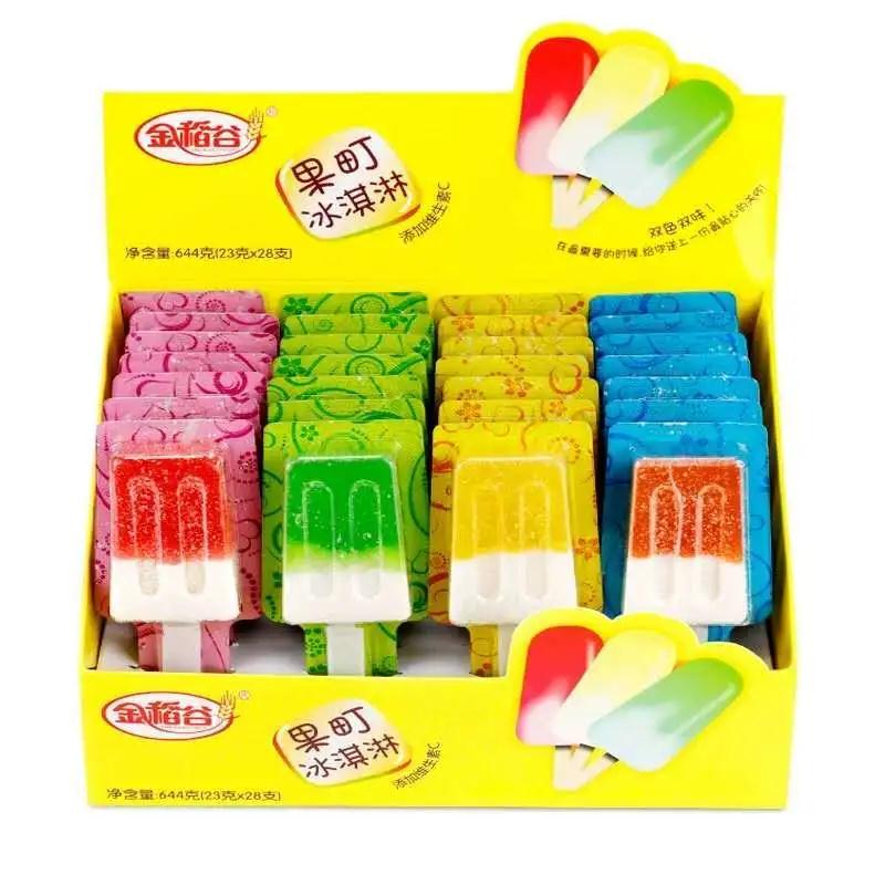 果町冰淇淋软糖,雪糕造型,一盒28支,一支23克,每盒有四种混合水果味,每支上面下面两个色,两种混合水果味,双色双味。添加维生素C,增强免疫力,家庭哄小孩必备良品。