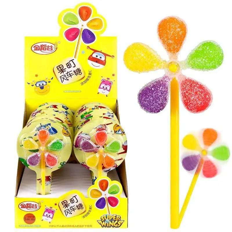 五彩风车糖,风车造型,可自由旋转,一盒24支,一支21克,每支有五种混合水果味。添加维生素C,有益身心健康,大人小孩都爱吃。