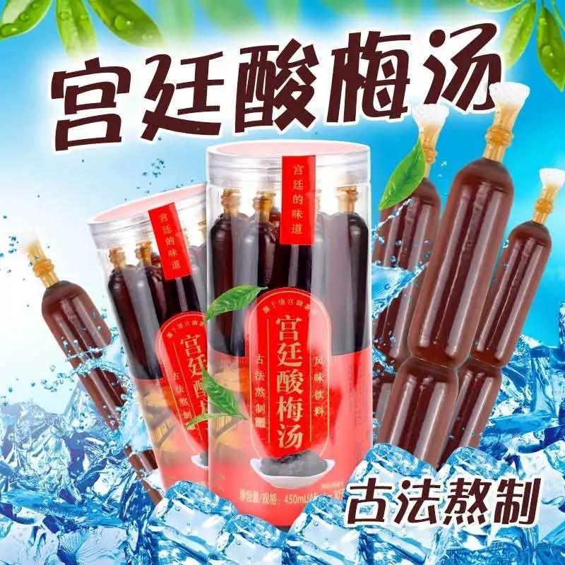 宫廷酸梅汤配方源于清宫御茶坊,清宫御饮,祖辈相传,采用优质山楂乌梅等采用传统配方制作。两种食法,常温下是非常可口的果汁饮料,可直接吸着饮也可以倒到怀中饮用,冷冻后是爽口的碎碎冰棒,酸甜爽口,冰晶均匀细腻。酸梅汤有抗疲劳,提神、利于身体酸碱平衡、降肝火等功效。