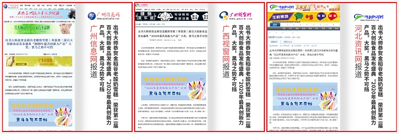 老酸奶雪糕获得本次百大创新食品发布盛典“2020年最具创新力产品”奖项,不仅大幅提高了食品的曝光量,还能够让更多的经销商和消费者了解到这些产品的特点、优势和厂商政策,从而助推食品的加速成长。这项殊荣定能为金稻谷品牌打开新的产品销路,形成新的发展空间,从而面向更加广大的客户群体,创造非凡的销售佳绩。