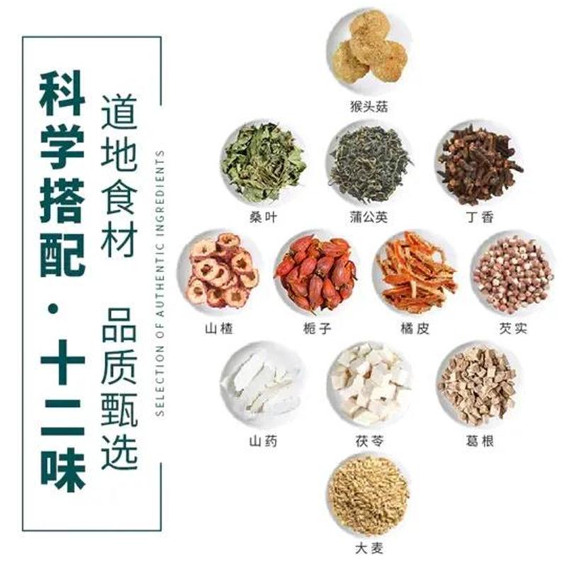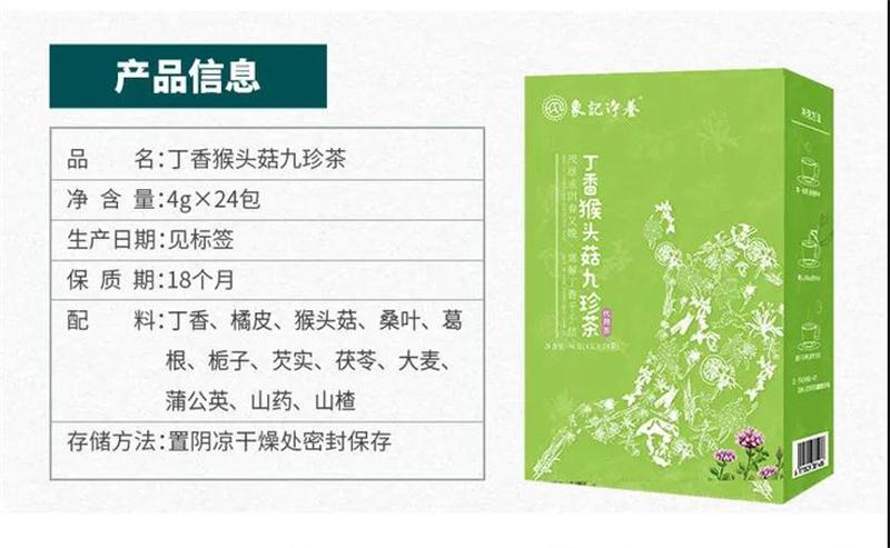这款象记养生-丁香猴头菇九珍茶是由多种药食同源原料配比而成, 天然食材最大好处就是,不会产生药物依赖,也没有任何副作用!
