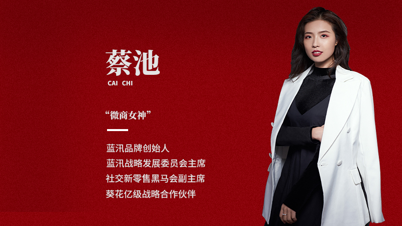 蔡池老师,是蓝汛品牌创始人、蓝汛战略发展委员会主席、社交新零售黑马会副主席以及新零售行业最具投资价值创业导师。她,是85后创业成功的代表人物;2015年进入社交新零售,从0到1推动蓝汛品牌的发展,在2019年实现年销售额8000万。