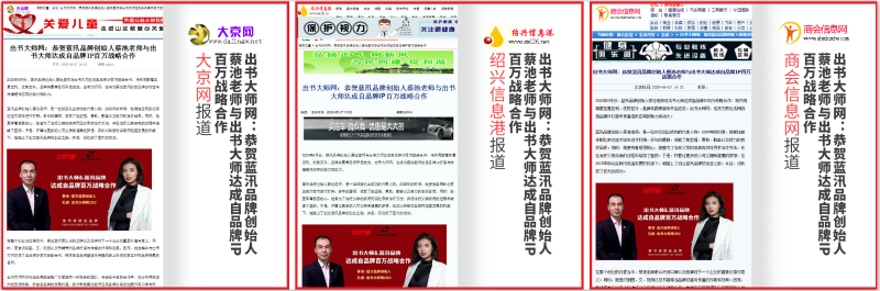 出书大师网作为在品牌战略推广方面独树一帜服务的团队,将会在今后的合作中,充分利用其庞大的资源优势,抓住自品牌的发展机遇,努力帮助蔡池老师及其品牌以有效地提升其口碑与形象,从而实现资源共享、共同发展、互利互惠的愿景。