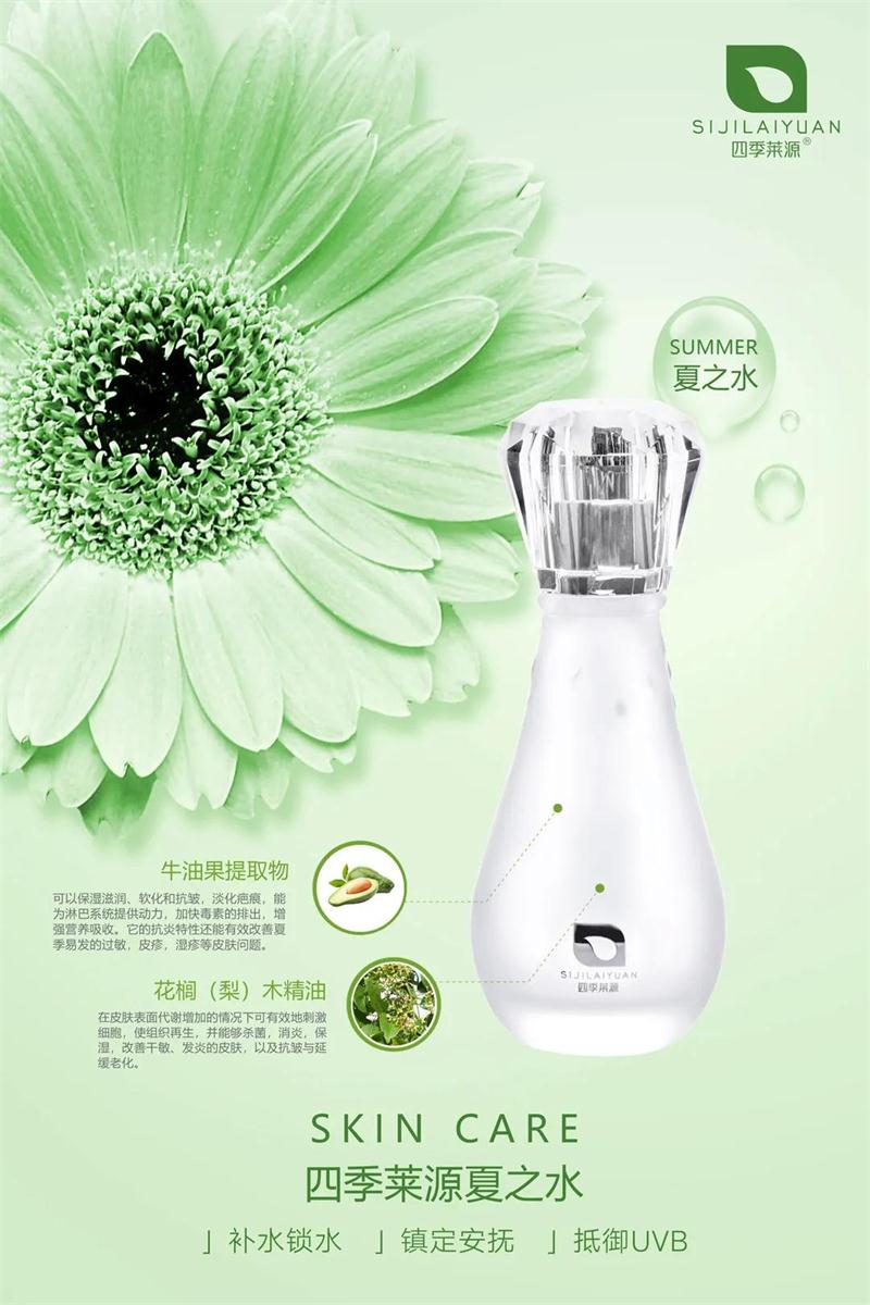 四季水是一款纯天然的精华护肤水,开瓶后保质期只有45天,是目前市场上保质期最短的护肤品,真正的纯天然,无激素。其次它代替传统的护肤步骤,一瓶水替代爽肤水、精华、眼霜、乳液、面膜、身体乳、护手霜、真正做到一瓶走天下,男女老少皆可用。其三,四季水根据中国时节,分为春水、夏水、秋水、冬水。每个季节不同配方,让皮肤吸收最合适的营养,长效保湿48小时。