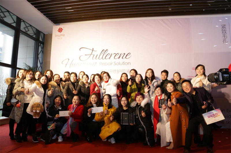 伴随着曼妙的音乐,十几名外籍模特拿着亚玺新品-零距美富勒烯焕妍修护原液走上舞台,向在场嘉宾展示揭秘,宣布零距美第一款原液正式上新。现场,零距美产品研发经理借助PPT,从研发、成分以及功效三个角度,向在场嘉宾讲解分析产品。
