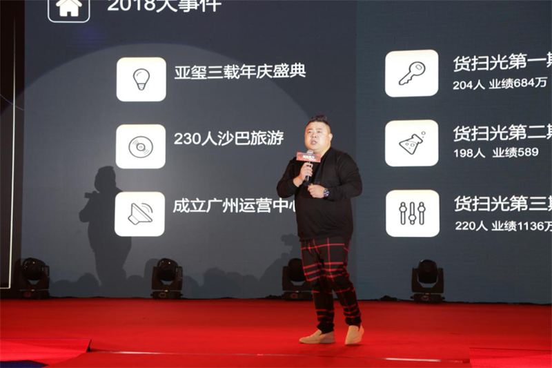 在台上,邓总向在场嘉宾总结分享2018亚玺大事件。2018年是不平凡的一年,集团创造了一个新的高度,谱写了一个新的篇章,这离不开亚玺家人们以及合作伙伴对亚玺的信赖与支持,在这里我衷心表示感谢。你们始终与亚玺不惧风雨,携手共进,坚定不移执行集团的战略,让亚玺这一年快速发展,取得辉煌成绩,感恩有你们。