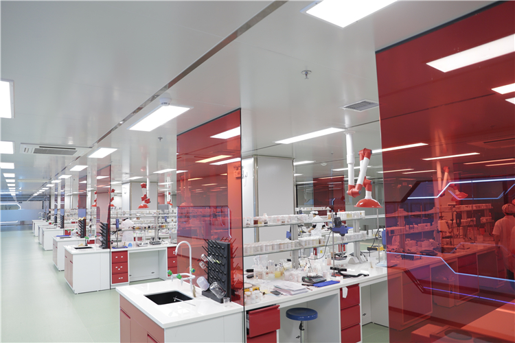 车间里设有安全评测、微生物、理化分析、稳定性测试等实验室。每一款新品从研发到上市,需要进行为期半年的临床测试,测试产品的功效性、安全性及使用性,以保证更好地完善产品使用感受和功效,给予消费者最佳产品体验。