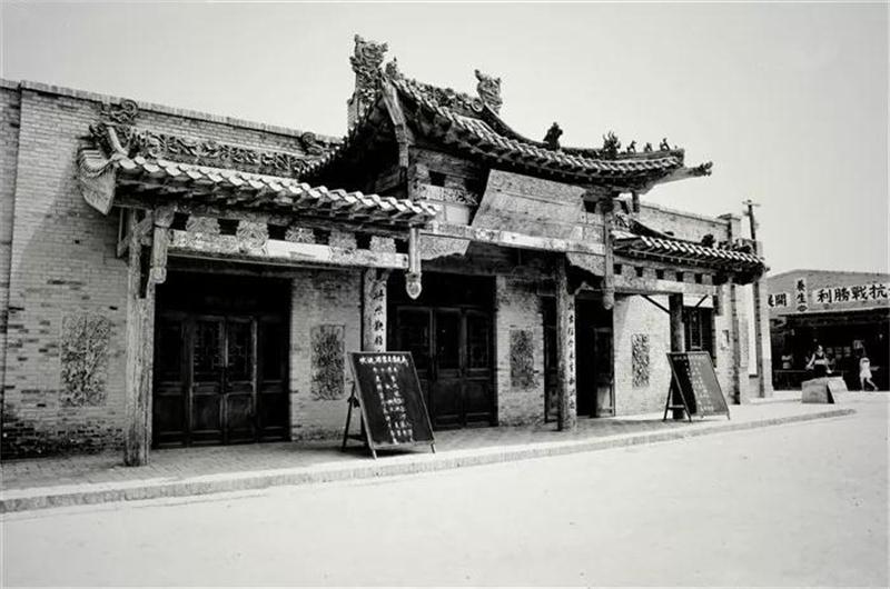 前店临街,两侧摆设长条形盛粮食的木斗,供进城卖粮食的农民使用。