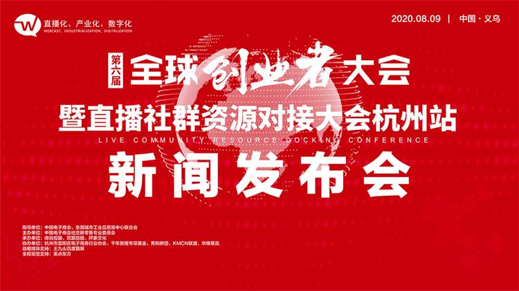 为了让行业内及媒体界更加深入和详细了解即将举办的“第六届全球创业者大会暨直播社群资源对接大会·杭州站”,微谷国际将于2020年08月09日下午在义乌举办第六届全球创业者大会暨直播社群资源对接大会新闻发布会。