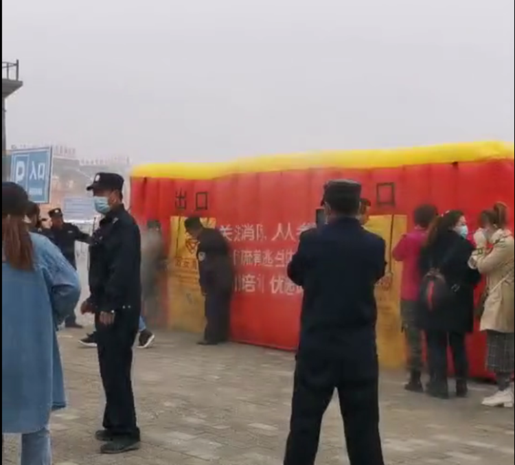政安消防培训中心消防宣传员给全体影城人讲述消防安全知识以及如何在紧急情况下安全逃生常识。