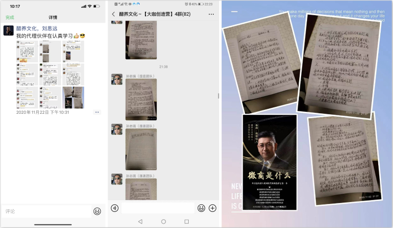 培训活动开启后,团队学员积极响应、努力学习,反响极佳。不少学员都表示,他们从课程中学到了许多有价值的知识与经验。有的学员表示:课程很精彩;而有的学员则赞扬:课程全是干货,既可以收获健康、又可以获得一份生意,可以帮助到很多人。在学员们纷纷点赞的同时,他们还积极认真地做好课程笔记,将实用、独到而又丰富的知识经验保存下来,作为自己能力提升的重要法宝。