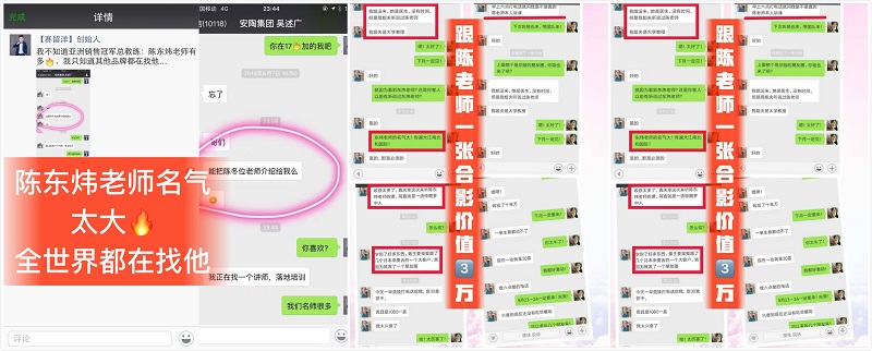 学习陈东炜老师的课程,手把手教你快速成为销售冠军;让陌生客户在最短的时间喜欢你相信你,并且主动合作;通过一个支点帮助团队快速裂变撬动更大的市场;通过六脉神剑,不仅卖出产品更卖出市场;使个人品牌形象和价值快速提升十倍以上,吸引更多高层次的客户及代理……