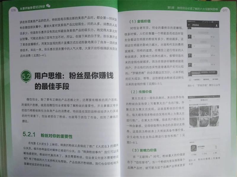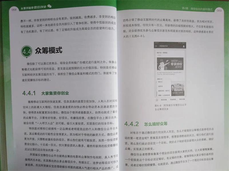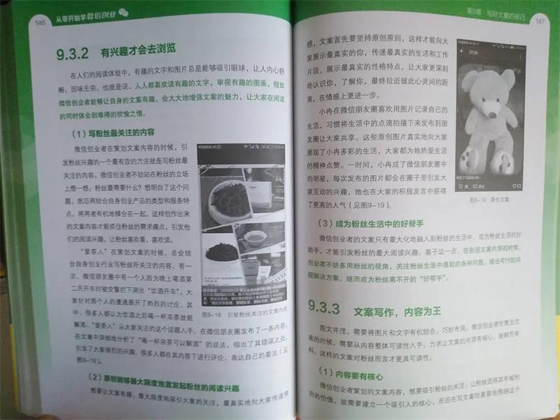 那么,在信息爆炸、微商屏蔽的形式下,如何开发有10亿用户的微信平台?如何精准营销,而不是做那些靠信息流曝光“扰民”的微商?《从零开始学微信创业》全书共计11个章节,以微信的平台为基础,用案例讲诉微信创业的思路及方式方法。内容涵盖非常全面,从入门起步到开启微信营销,建立自己的微品牌。适合微商创业的入门指导用书(2016年出书,2020年才去看,错失了一些机遇啊......)。