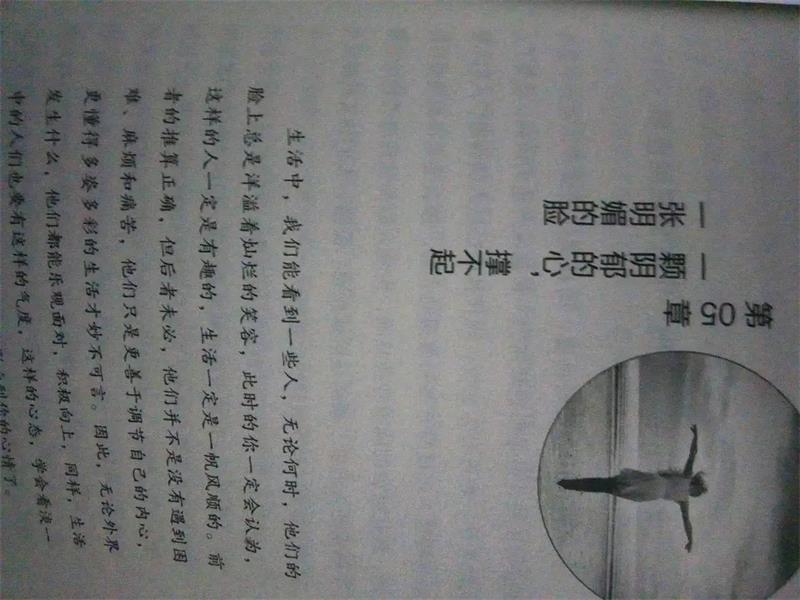 每个人都会有自己的自卑,亦或是学习成绩不好,又抑或是唱出的歌不好听,又或者是因为一件事情做不好。书中有这么一句话讲得非常的好:你所有负面的想法都来自于你拿别人的标准在衡量自己。人人都想成为别人眼中羡慕的人,在不断完善自己,应符合别人的要求。可是忘了自己真实的自己,这本书不仅教我们面对心灵的挫折,更是为我们改进指明了方向。