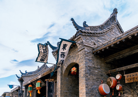 2012年,镇北堡西部影城仅用97天时间修建的“老银川一条街”,逼真地再现了老银川旧貌。街道以复制旧时的建筑物为中轴,以解放前银川市最繁华的“柳树巷”为蓝本,用120米长的街道向游客立体呈现曾经的边陲名城。走进“老银川一条街”景点,街道两边尽是极具年代感的建筑:“百川汇”“天城西”“合盛恒”“敬义泰”“大陆文化社”“大公报宁夏分馆”“宝珍照相馆”“银川汽车站”……街道中间还原了老银川“羊肉街口”“米粮市”巷口的盛况,以及著名的“承天寺戏台”。这些银川历史上的大商号、地标建筑,沉淀着历史沧桑,给游客一种穿越之感。