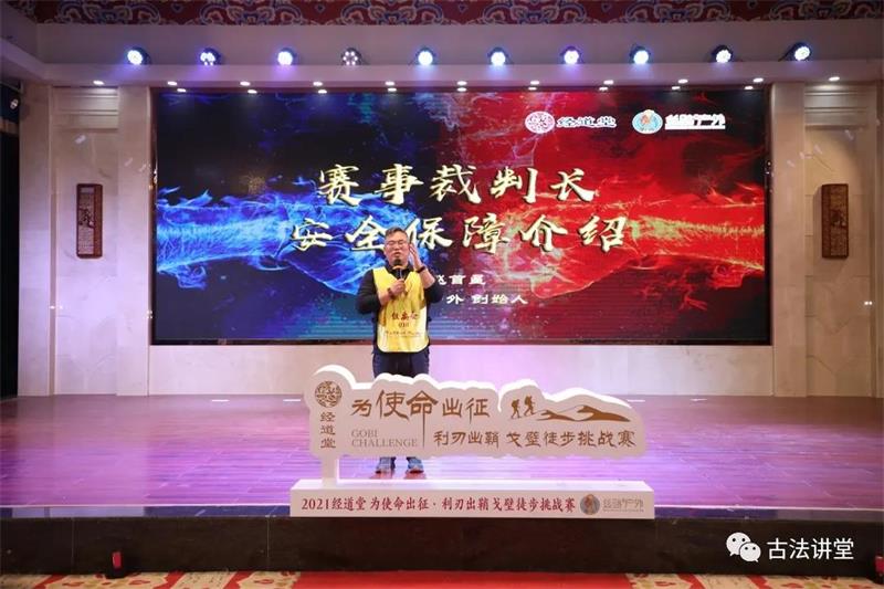 戈壁徒步挑战赛事裁判长介绍本次活动的安全保障团队及徒步安全注意事项,保障所有伙伴远征体验和心灵感悟。