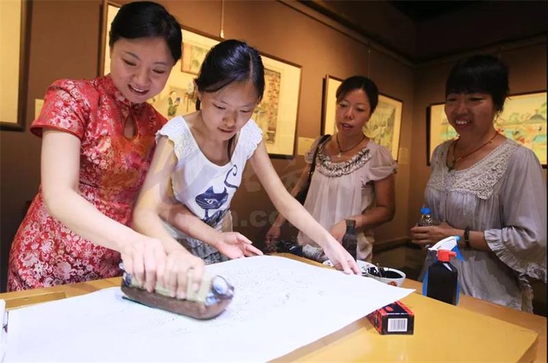 有着浓厚乡土气息的“非遗”木板年画体验活动是孩子们最喜爱的项目。年画艺术馆的老师向游客们们演示木板年画传统制作工艺。年画的内容多为喜庆吉祥、门神、灶王或戏剧,保存了过年的民间风俗,让游客从中体会到传统文化之美。