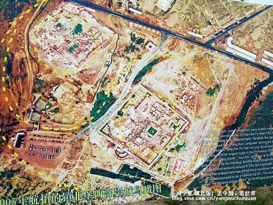 镇北堡中的两座城堡是明清时期为防御贺兰山以北各族入侵银川城而设置的驻军要塞,分别建于明弘治十三年(1500年)和清乾隆五年(1740年),镇北堡最吸引影视艺术家的正是这里被岁月侵蚀的衰而不败的独特景象。这两个古城堡在高空鸟瞰,就好像太极图一样。