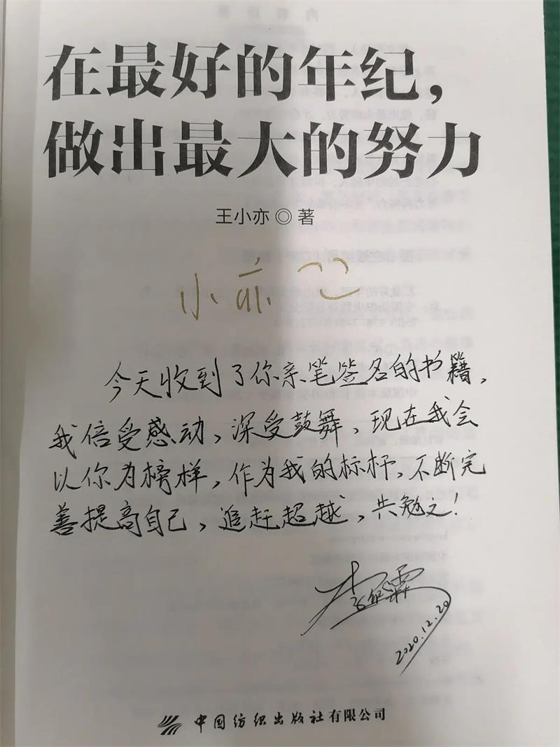 今天收到了小亦亲笔签名的书籍,甚是欢喜,非常开心!正所谓有朋自远方来,不亦乐乎!毕竟读一本好书就像交一位好朋友,故此这本书对我而言意义非凡,我会好好学习,不断实现追赶超越!