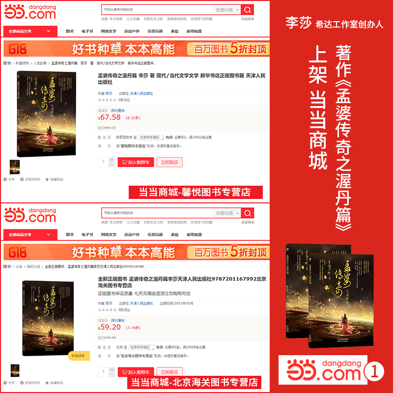近日,希达工作室创办人李莎老师著作《孟婆传奇之渥丹篇》大陆版全渠道上架,同时登陆五大头部网站,一时间风头无两,好评无数,荣登图书畅销书榜单,给广大书友带来了一场传统文化的精神盛宴。