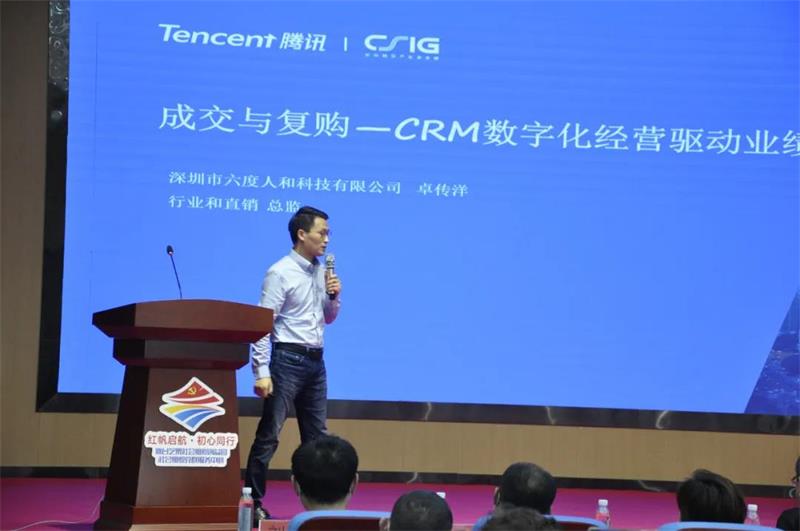 腾讯生态链合作伙伴、腾讯拓客通全国行业总监卓传洋进行《成交与复购-CRM数字化经营驱动业绩提升》主题演讲。
