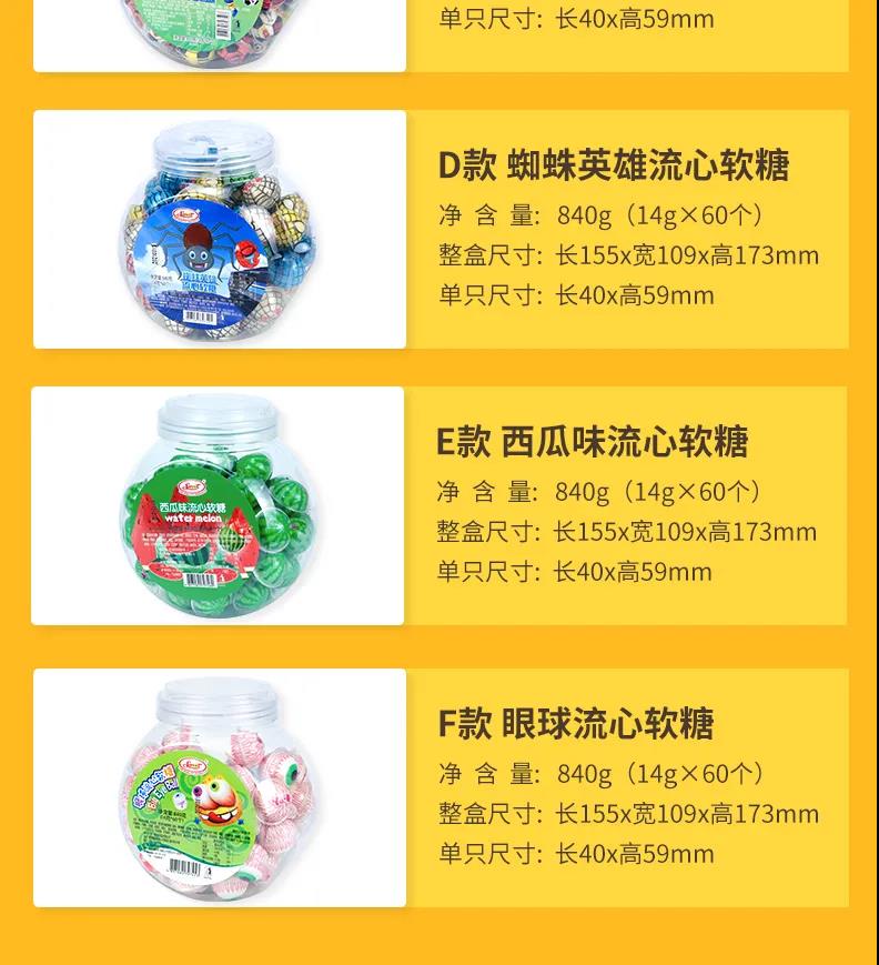 这款流心软糖,有6个造型呢!QQ弹弹,一口咬下去,爆浆流心,酷爽十足,刺激味蕾,太美味啦!一整罐满满有60个,超划算,好吃又不贵!