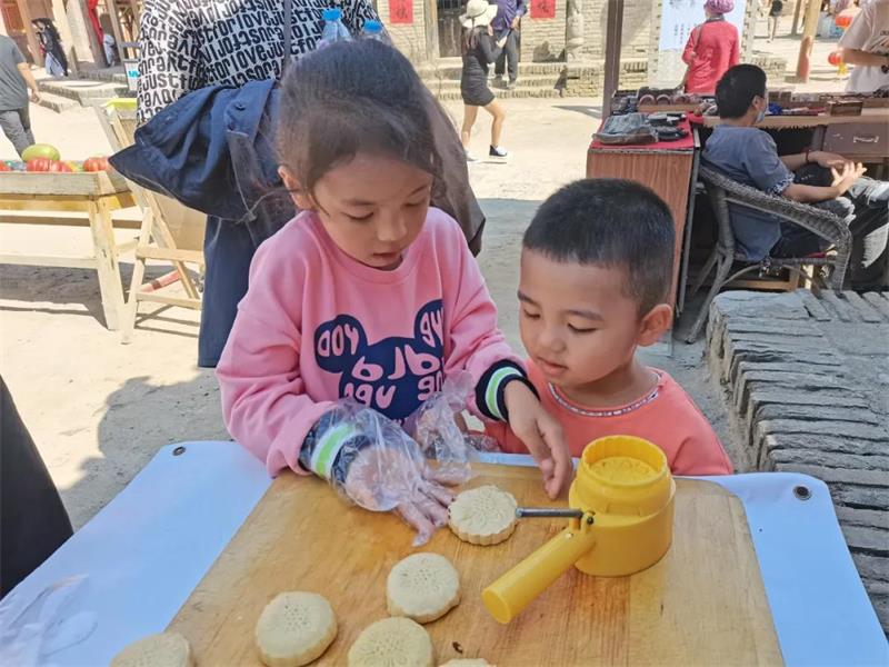 在这个中秋佳节,镇北堡西部影城主打民俗文化+影视休闲游。清城街道小广场设立了制做月饼体验区,游客们不但可以免费在这里亲手做月饼,还可以现场与家人、朋友一同品尝月饼。对于很多年长的游客来说,做月饼已然触动了脑海里最美好的记忆。一位游客说:小时候,每当中秋节,奶奶就会带领着全家一起蒸月饼,那时候的月饼可比现在要大上20-30倍,蒸好的月饼要放在晚上一家人赏月的时候吃,那时候的月饼虽然只有一个口味,但却是记忆中最美的味道。对于现在的小朋友们,这是他们第一次见手工做月饼,孩子们不由的撸起袖子尝试。看到自己做好的月饼,高兴的拍手叫好,吧唧吧唧的小嘴吃的那叫一个香。
